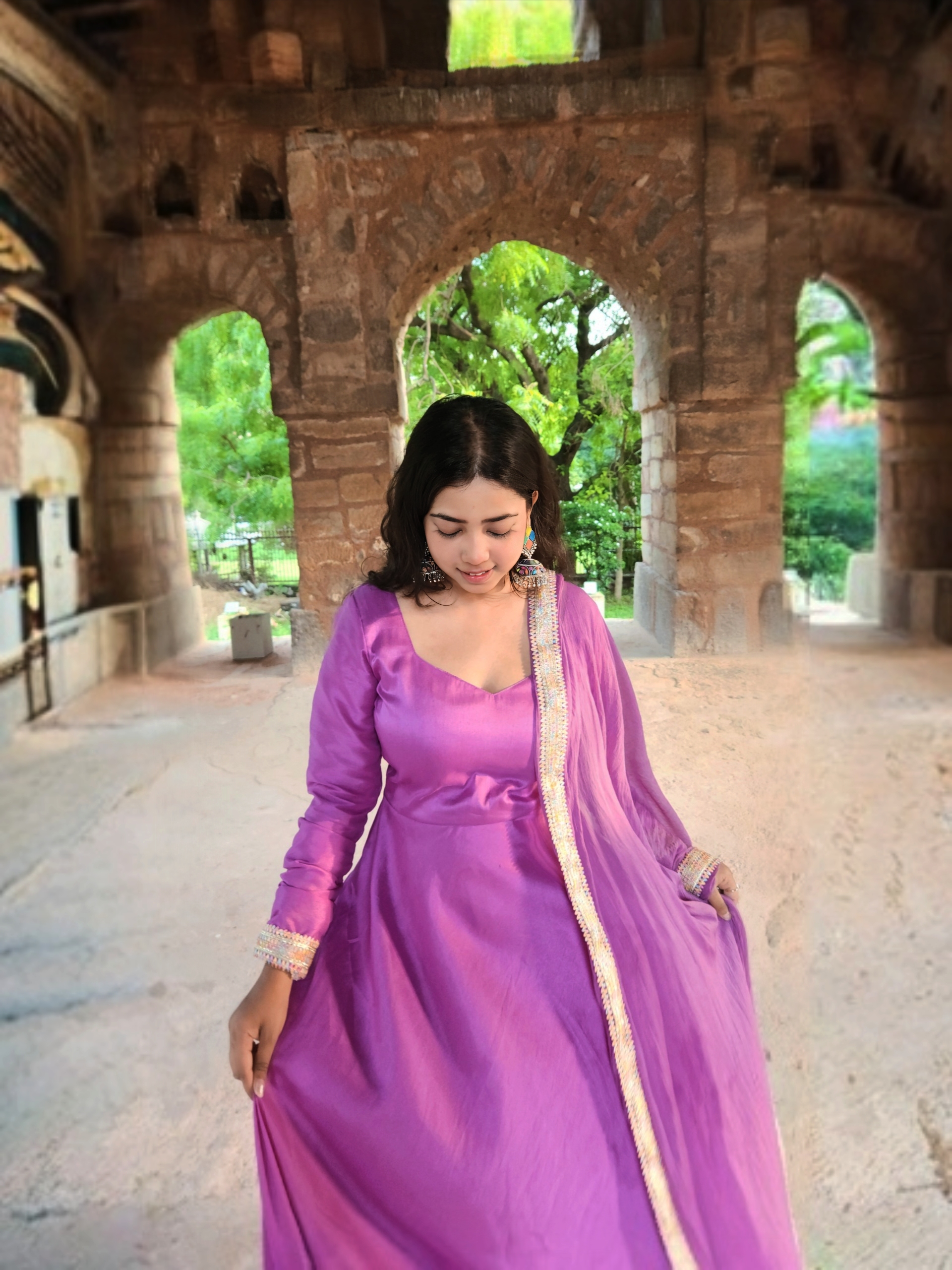 Elegant Anarkali silhouette with a graceful flare for a royal look