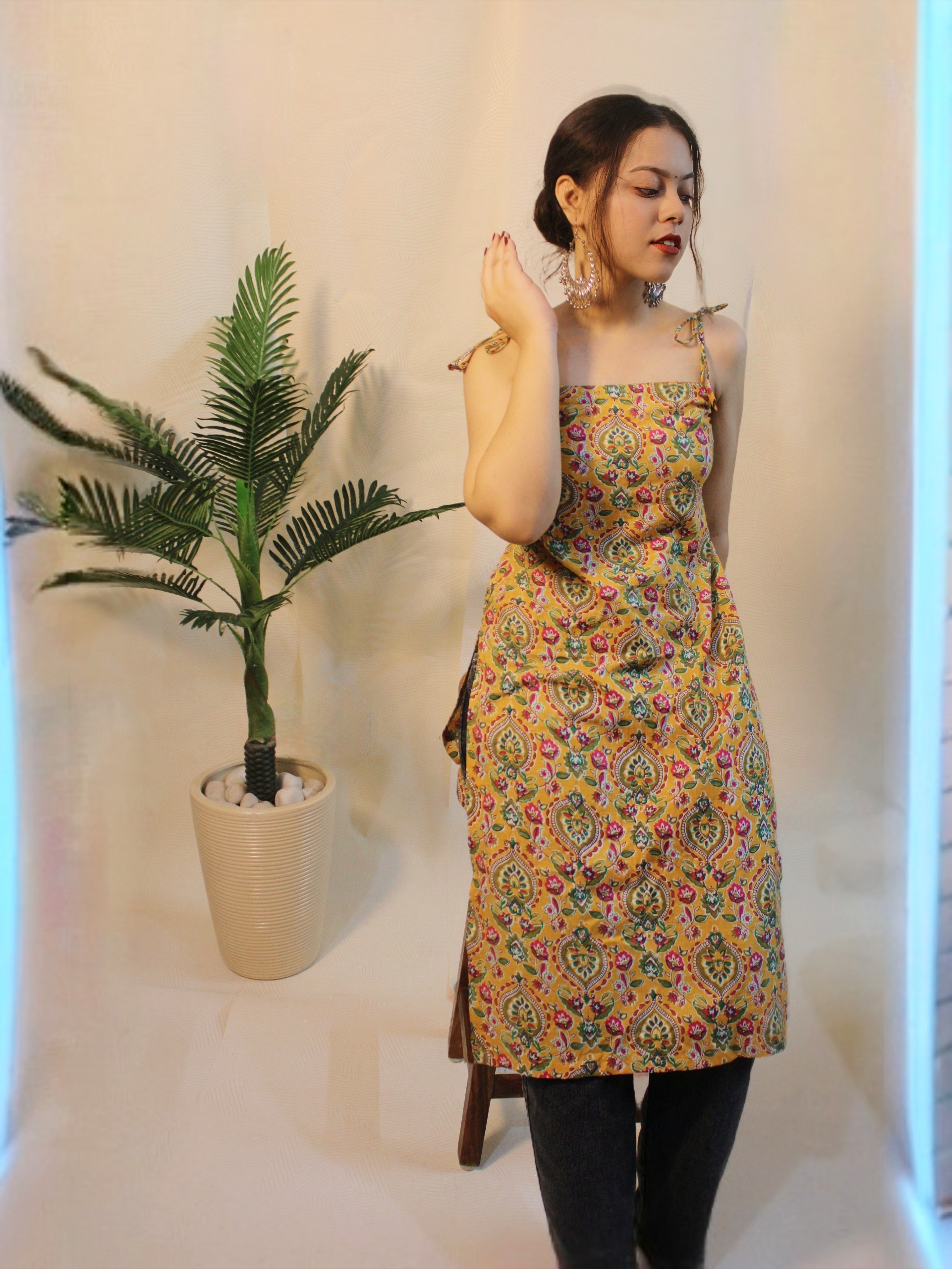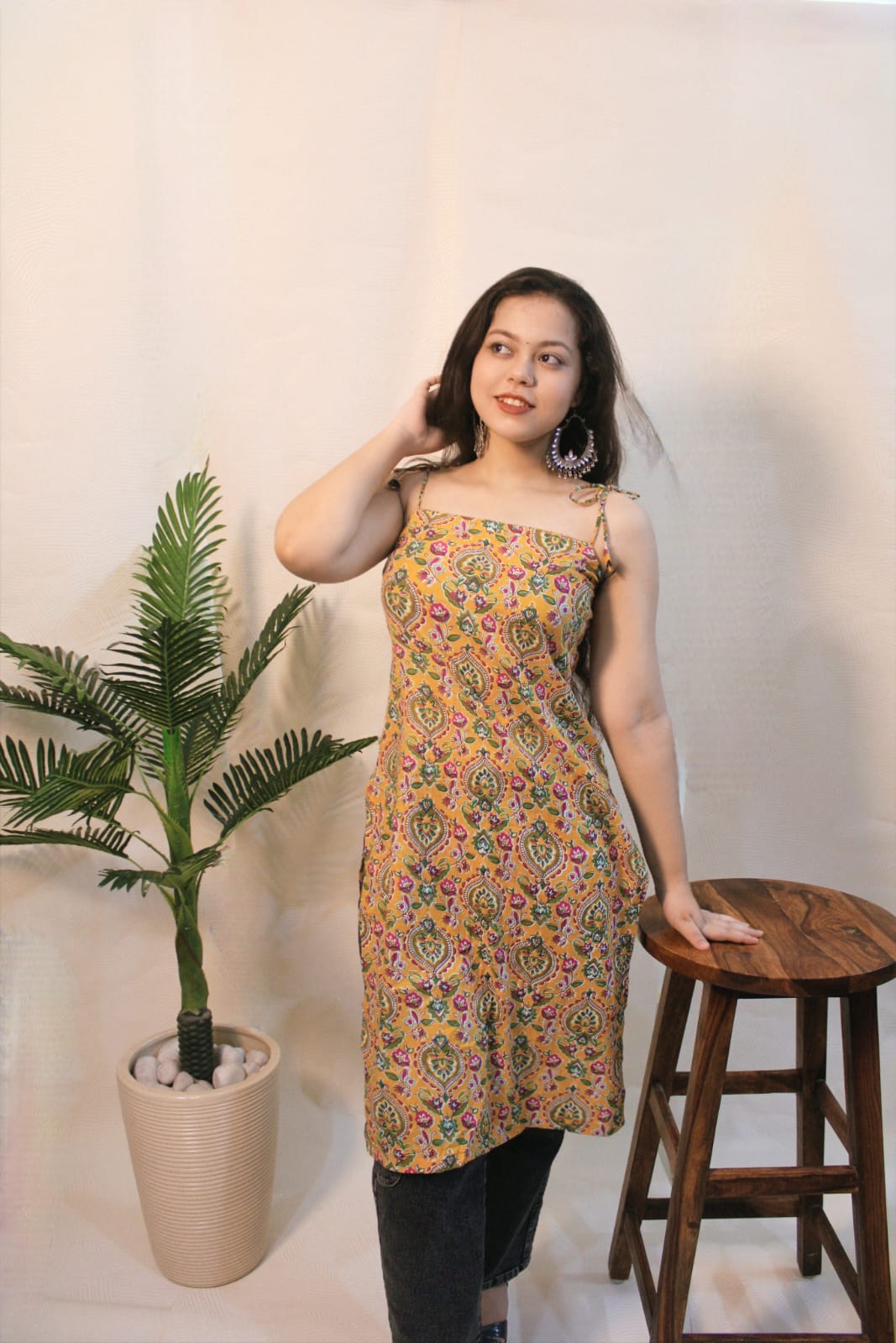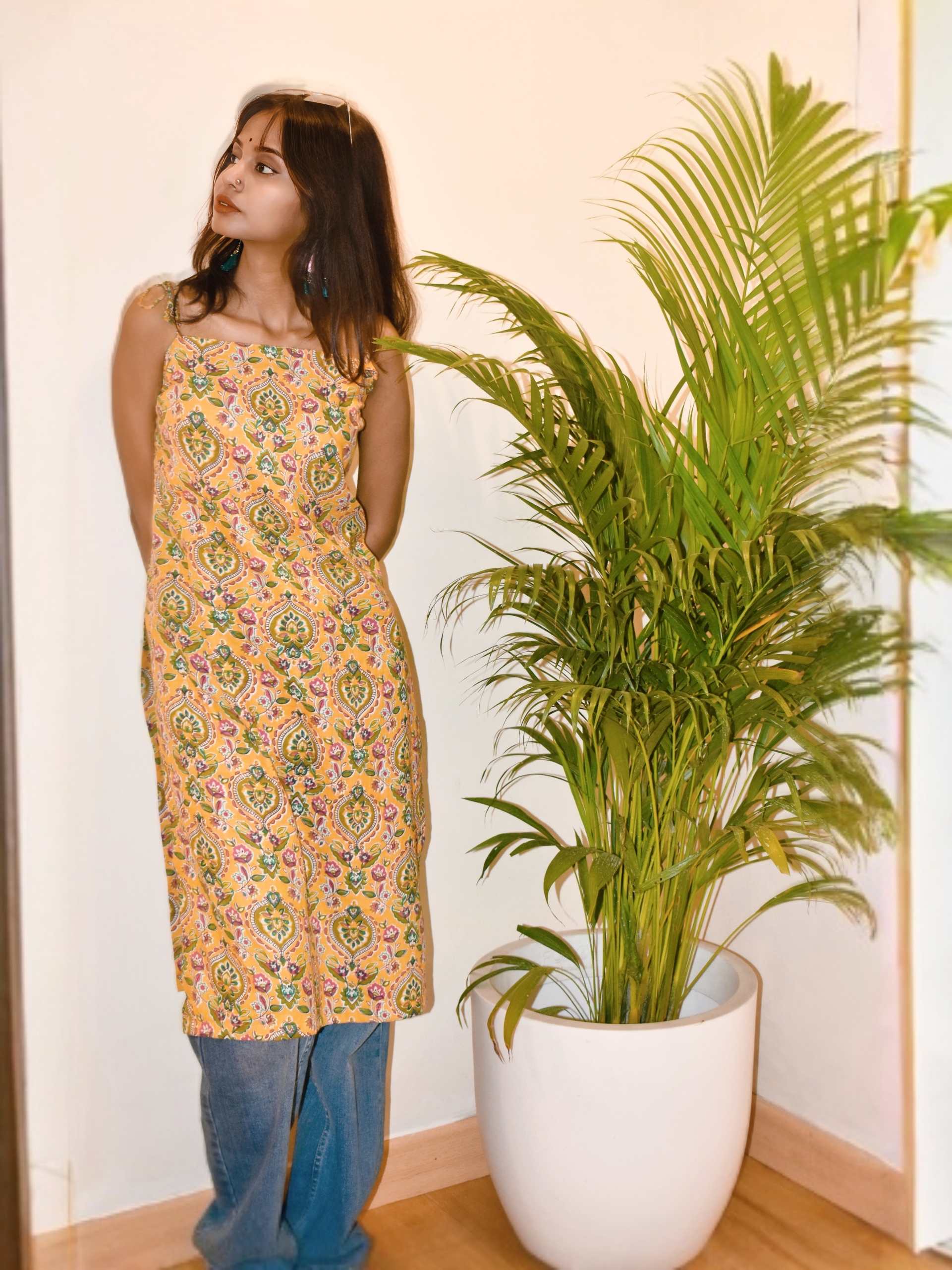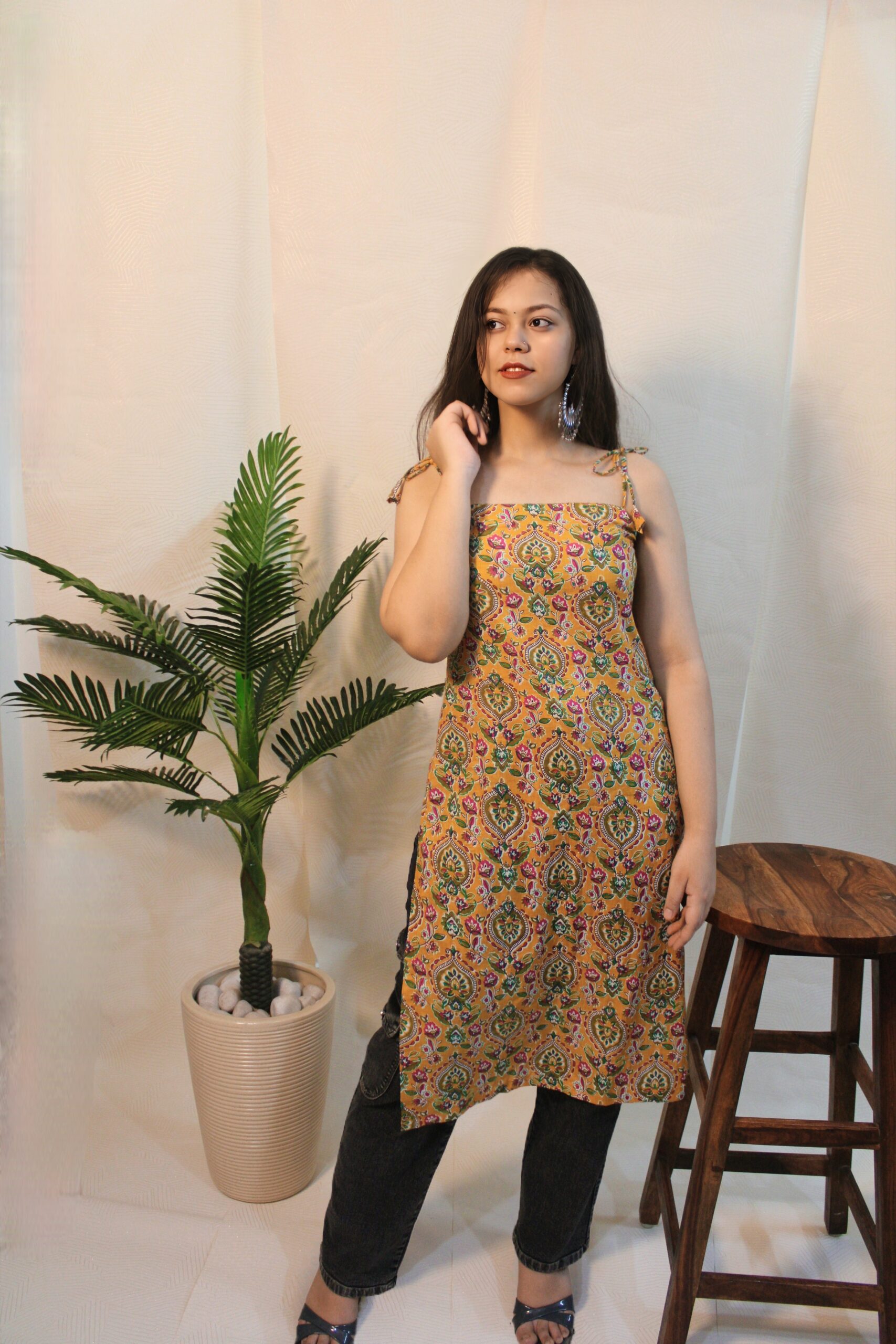 Light, breathable, and effortlessly modern — this noodle strap cotton kurti is perfect for sunny days and easy layering, with just the right touch of desi-cool.
